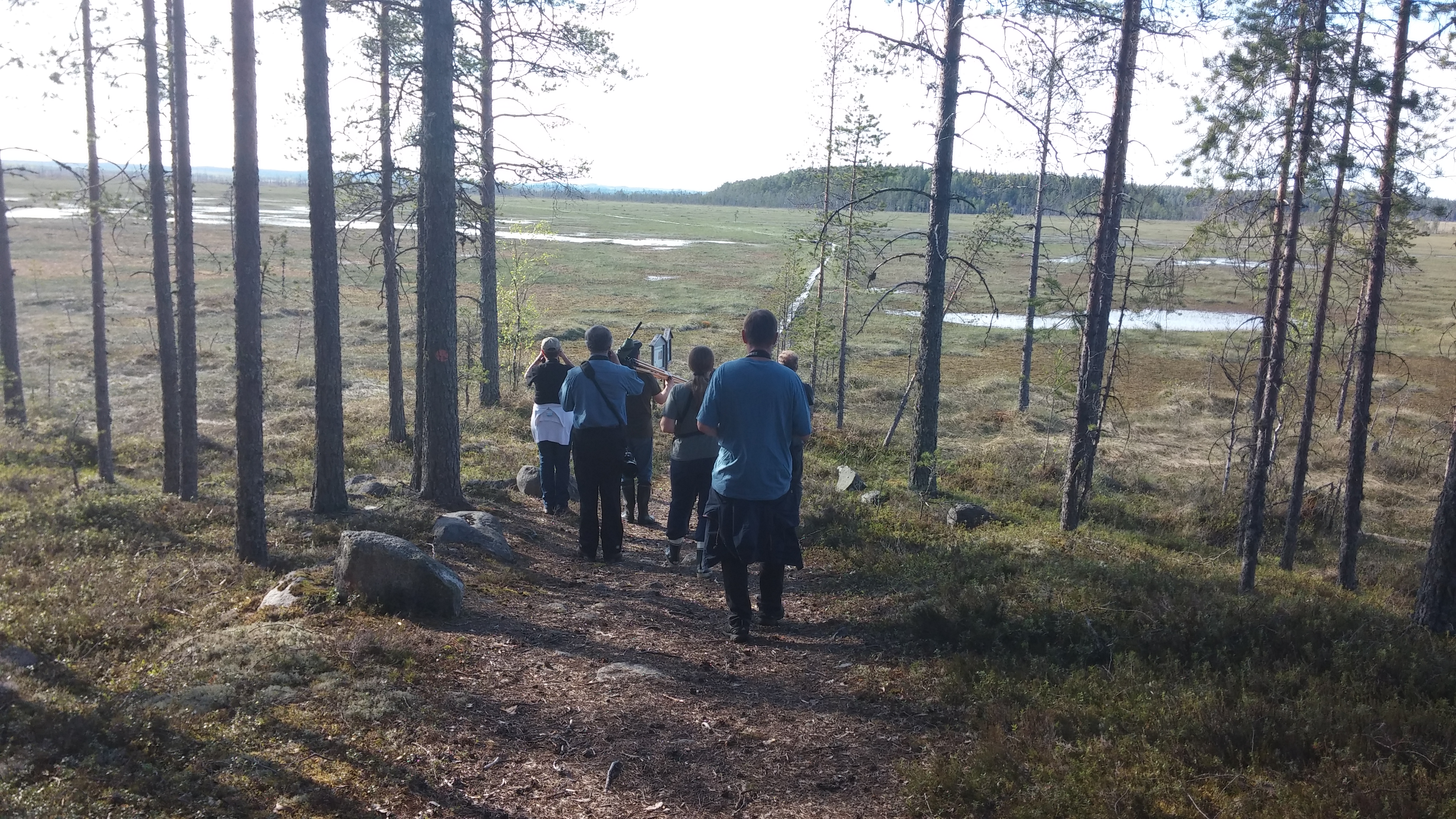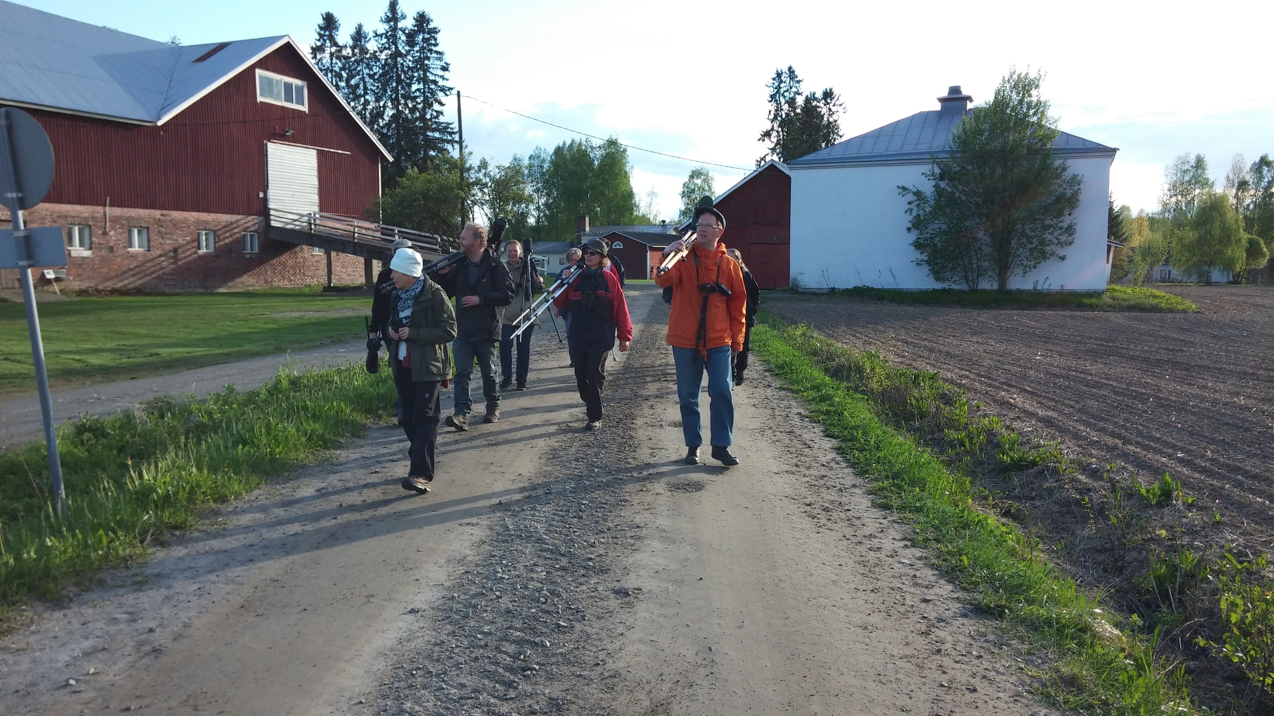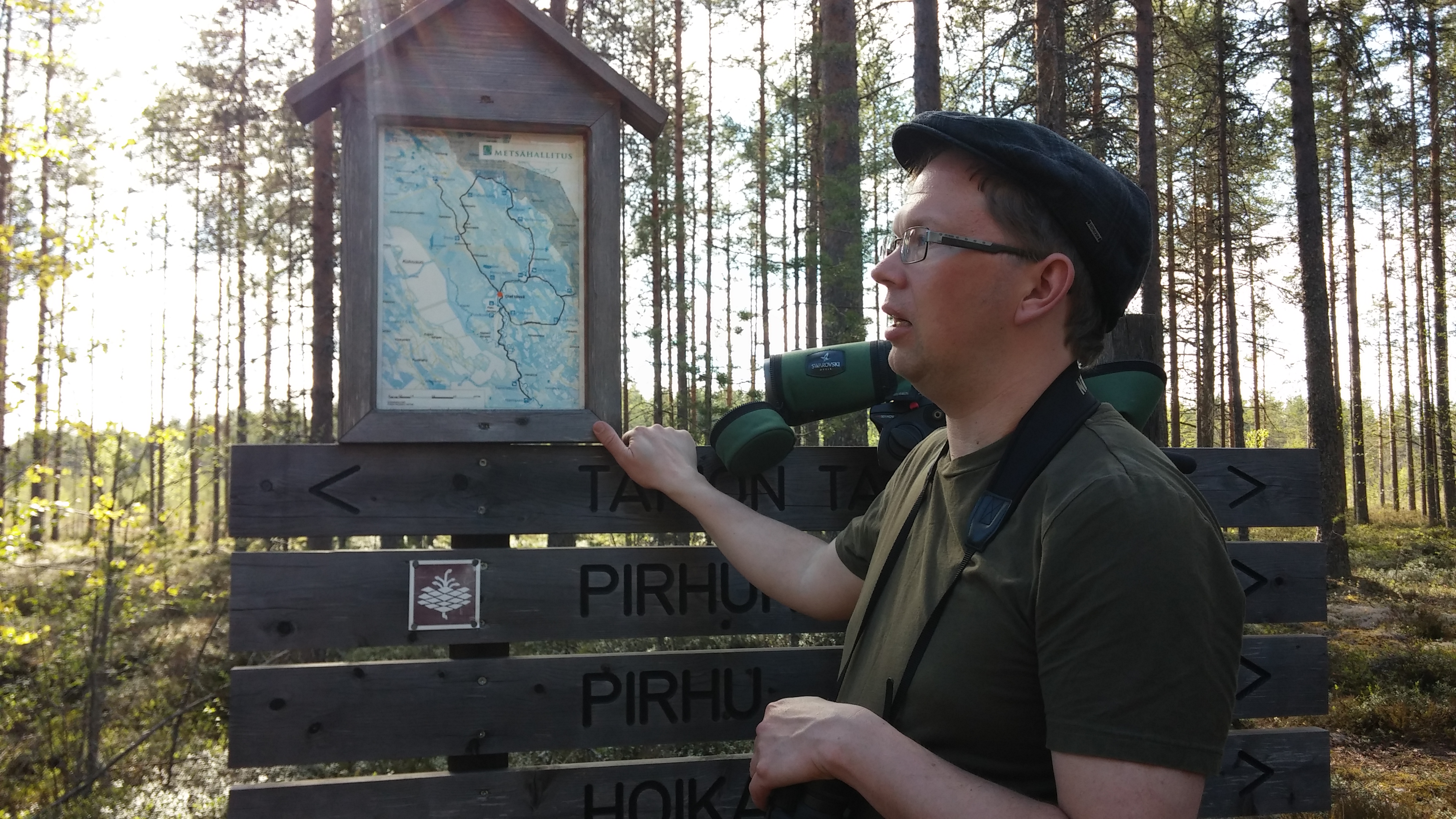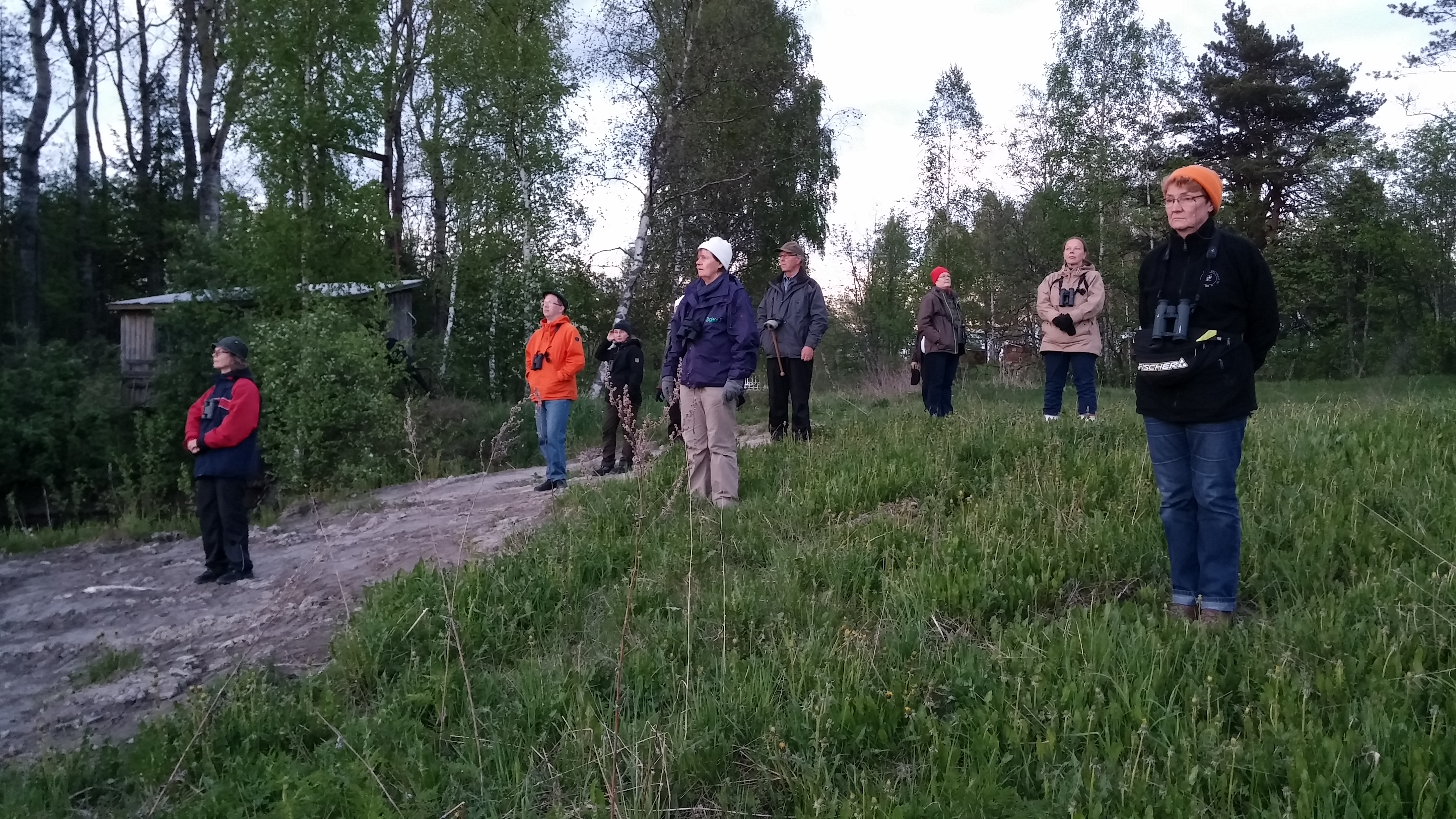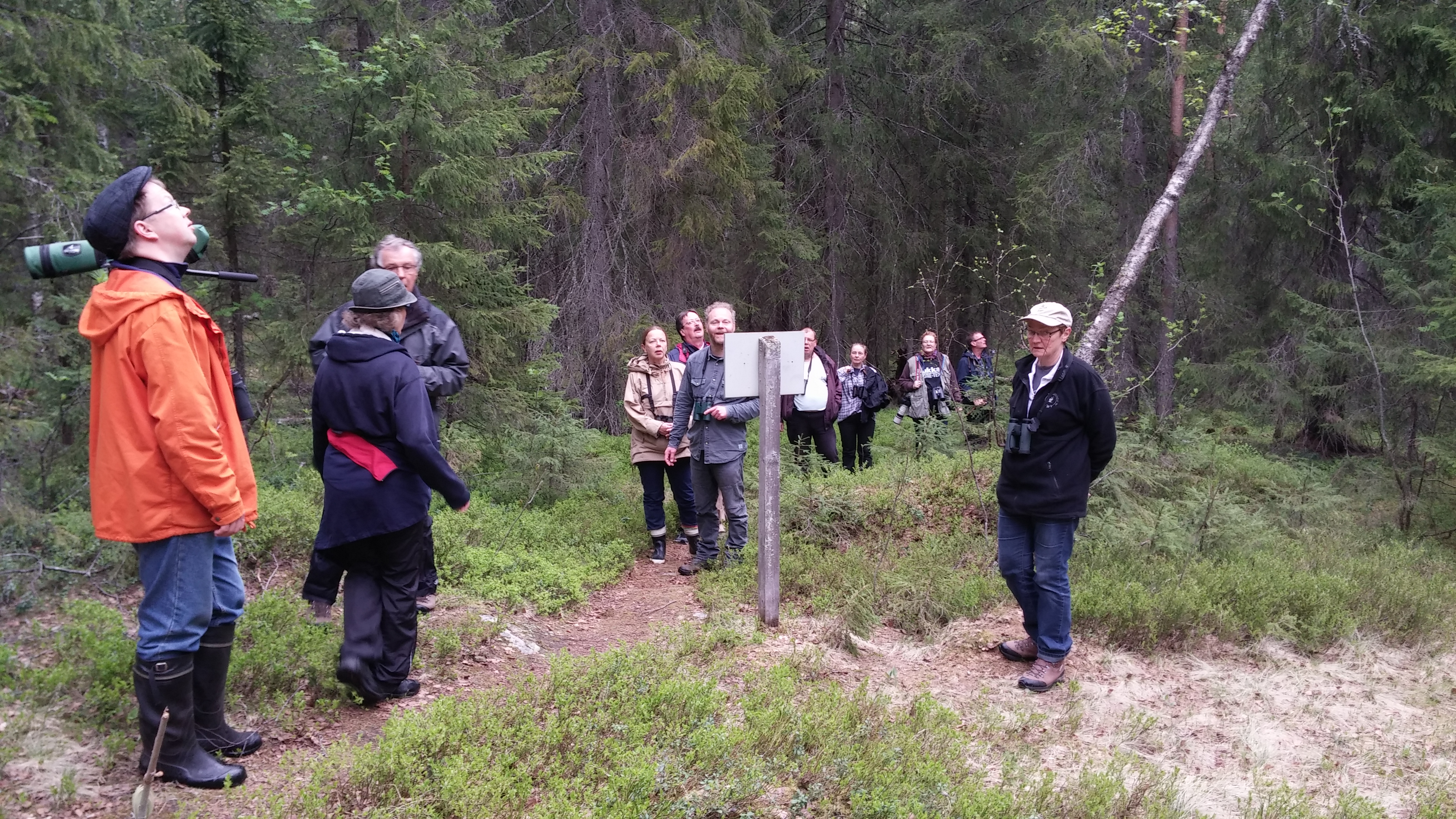 Sunnuntaiaamuna oli sitten vuoro aarniometsäretken, kun suuntana oli Autiovaaran metsäpolku. Metsä ei varsinaisesti raikunut lintujen laulusta, mutta jonkin aikaa käveltyämme ääneen intoutui ensin pikkusieppo ja sitten idänuunilintu. Hetken ne lauloivat yhtä aikaakin ja niiden lauluja oli helppo vertailla. Hieman myöhemmin sinipyrstöatrappi aktivoi ylempänä vaaranrinteessä olleen linnun ja pikamarssin jälkeen lintua päästiin kuuntelemaan lähempääkin. Kuultiin myös mm. punatulkku, peukaloinen, töyhtötiainen.