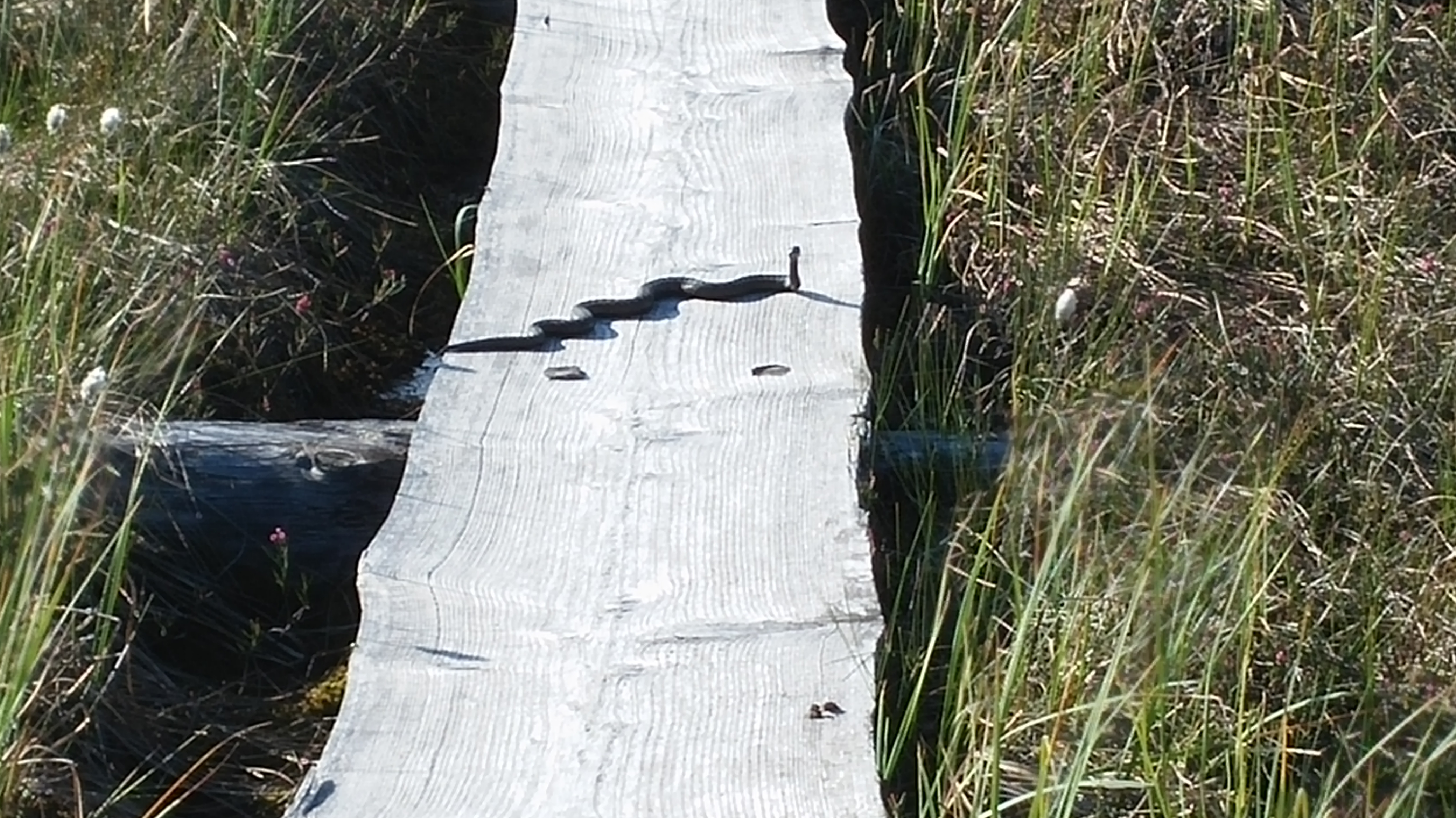 Pitkoksilta nähtiin mm. pikkukuoveja, liro, valkoviklo, niittykirvisiä ja kulorastaita – sekä kyitä, jotka paistattivat päivää pitkosten kupeessa.