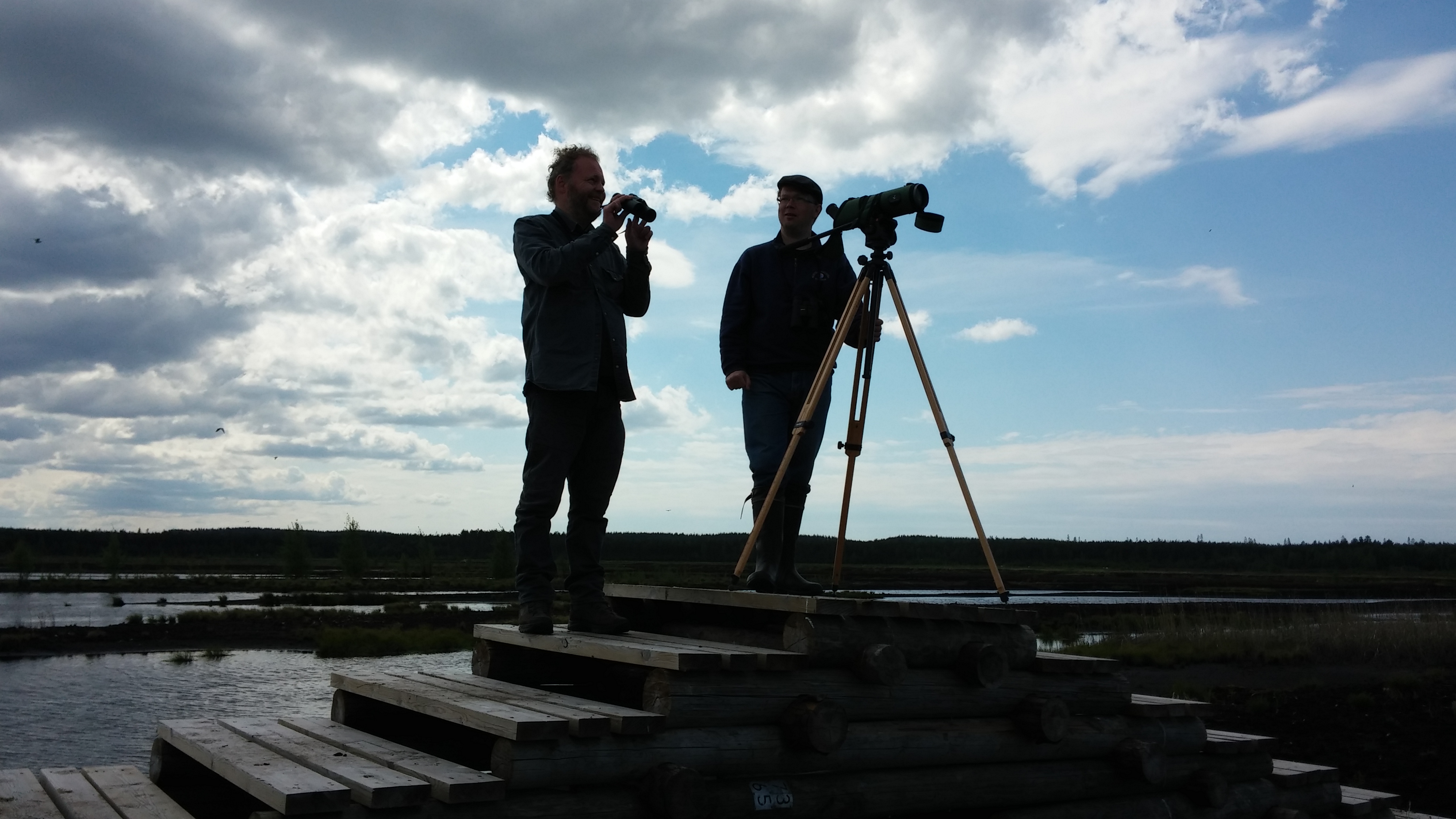 Metsäretkeltä palattua suunnattiin sitten takaisin ihmisten ilmoille. Kuurnan padon jälkeen pellolla näkyi noin 100 kurjen parvi. Ennen kotiinpaluuta matkareitille mahtui vielä Kontiolahdella sijaitseva Linnunsuon kosteikko. Paikka on Vapon entinen turvesuo, joka piti suurten päästöjen vuoksi ottaa pois käytöstä ja muutettiin sittemmin kosteikoksi. Retkueemme päästyä kiertämään aluetta listalle saatiin mm. mustakurkku-uikku, tylli, pari suokukkoa, pikkulokkeja, heinätavi ja pari jouhisorsaa. Reissulle saatiin kuitenkin vielä mahtava lopetus, kun paikalla aiemmin viikolla nähty RANTAKURVI ilmaantui yhtäkkiä näkyville ollen katseltavissa hyvän aikaa. Aika monelle tuli tästä elis:).