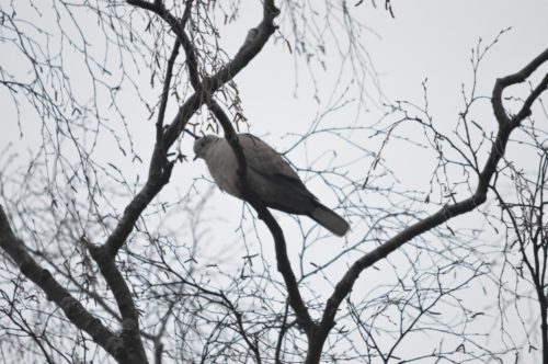 Osalle alueen pihoista ja niiden ruokinnoista näkee tieltä melko huonosti varsinkin isommalla porukalla, mutta onneksi turkinkyyhkyjä ja nokkavarpusia molempia lenteli edestakaisin ja istui välillä puiden latvustoissa. Enimmillään näkyvissä oli kuusi turkinkyyhkyä ja kaksitoista nokkavarpusta yhtä aikaa.