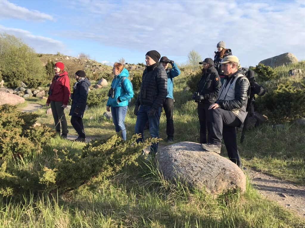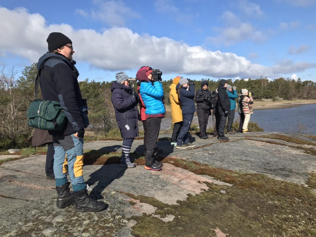 Tringan saariretket ovat suosittuja. Retkeläisiä huhtikuussa Örössä. Kuva Jaana Sarvala