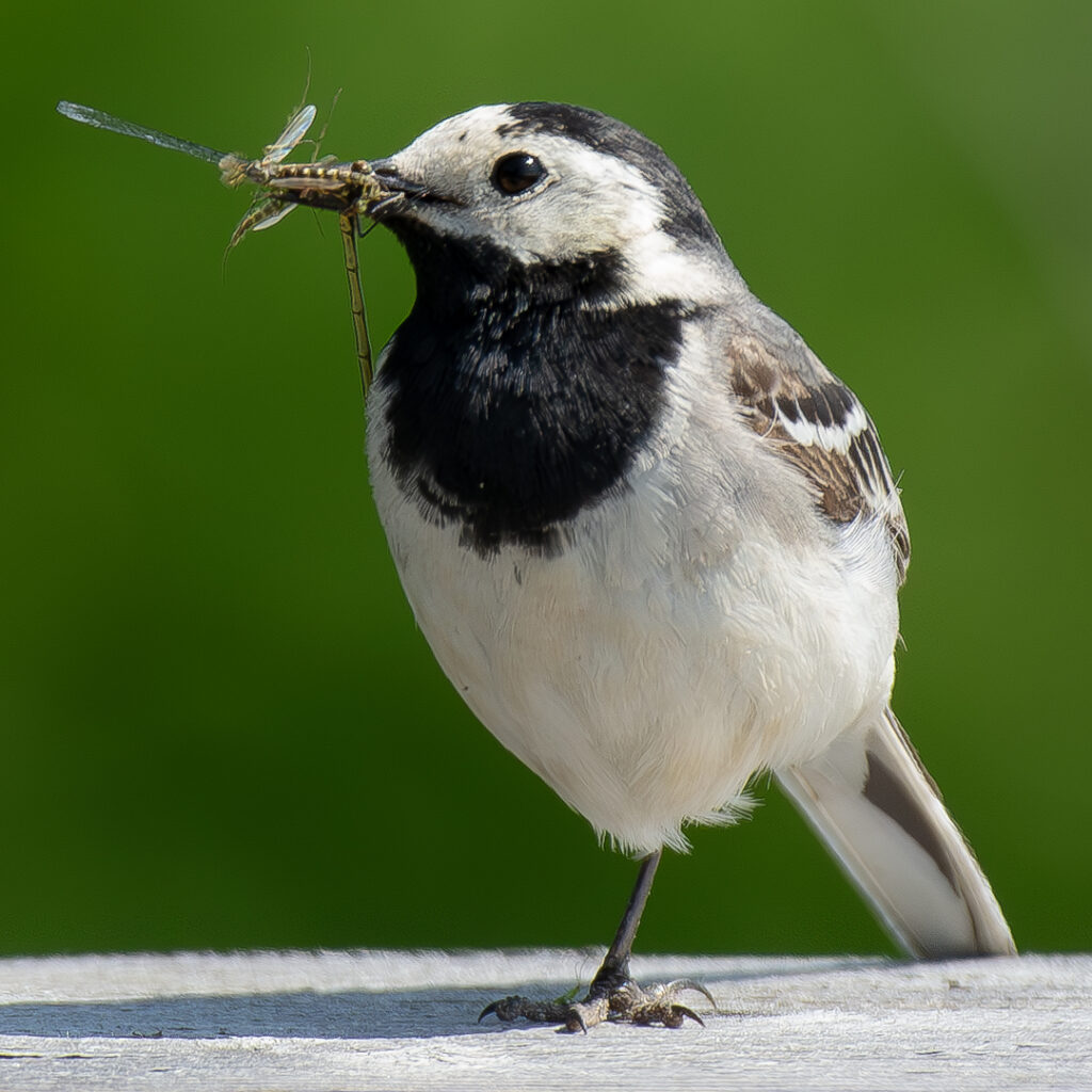 Hakalan katselulavan kaiteella toista jalkaansa lepuuttaneen västäräkin kuvasi Juha Salin.