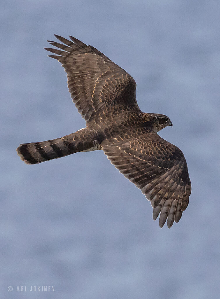 Tulliniemen kärjessä koukattiin asema-alueen kautta suoraan eteläkaltsille, jossa ei ehditty edes laittaa optiikkaa valmiiksi, ennen kuin bunkkerin havainnoijat huusivat ”amppari päällä”. Hieno nuori ampuhaukka teki muutaman kierroksen niemen päällä jatkaen määrätietoisesti länteen.
