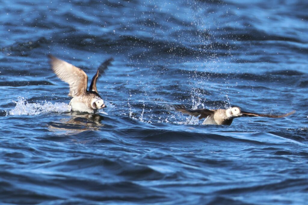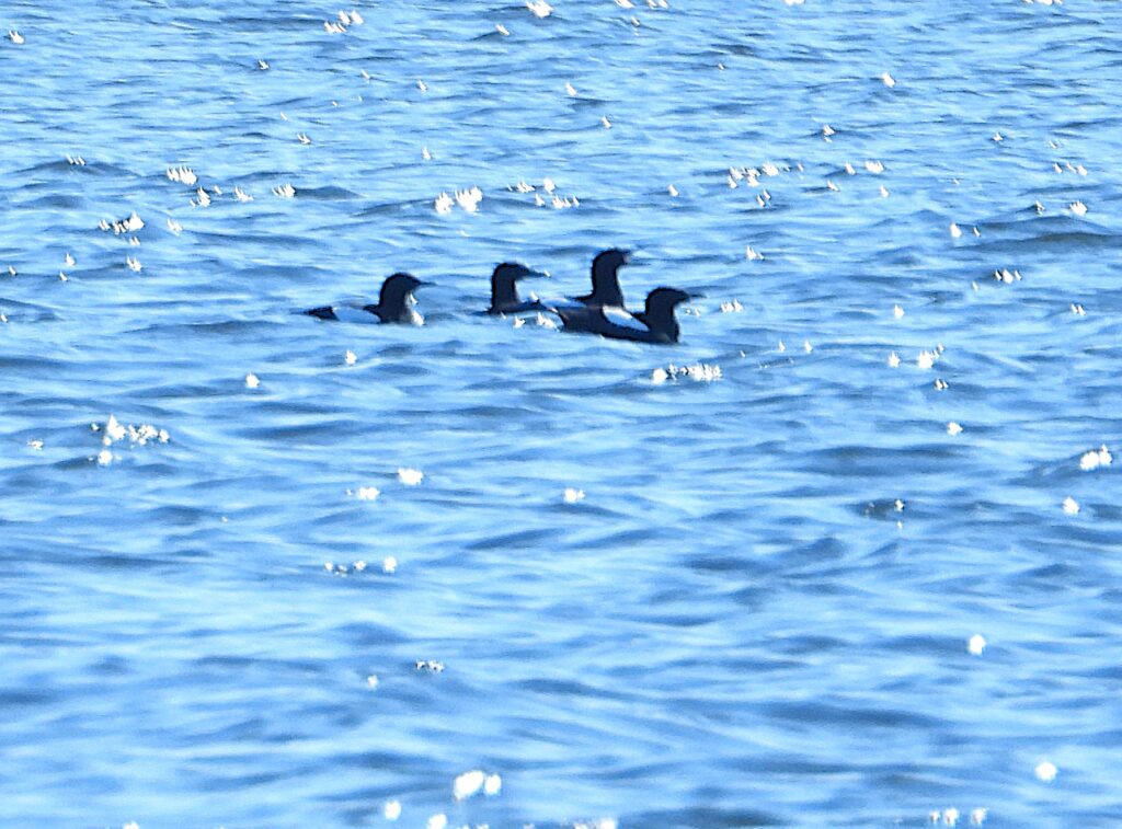 Riskilöitä nähtiin runsaasti Katajaluodon ja Harmajan välisellä alueella, yhteensä vähintään 40 yksilöä. Ruokki havaittiin molempina päivinä, joskin sunnuntain yksilö jäi etäiseksi ja katosi nopeasti vastavaloon ja aaltoihin.