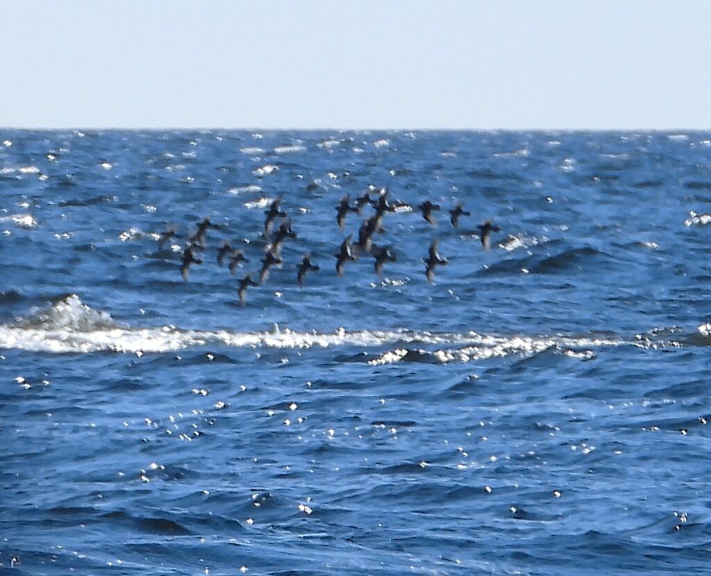 Sunnuntaina merisirrejä ei valitettavasti löytynyt, vaikka samalta aamulta oli havainto parvesta Louekarilta. Alue tarkistettiin, mutta linnut olivat ehtineet siirtyä.